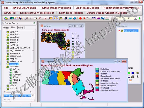 GIS分析和IDRISI圖像處理工具,以及垂直應用的一個星座。 TerrSet提供了業界最廣泛的一套地理空