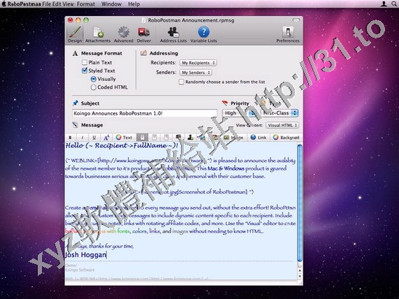 Koingo Software RoboPostman v1.1.9 MacOSX 英文正式版(郵件編輯軟體)