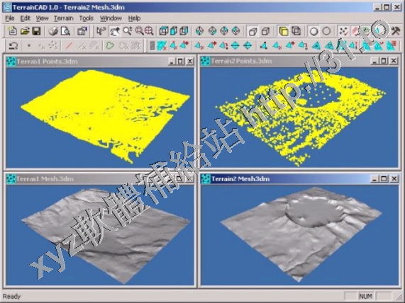 形網格圖。 TerrainCAD通過一系列的不規則的測量點,裂縫線和等高線生成地形網孔,它