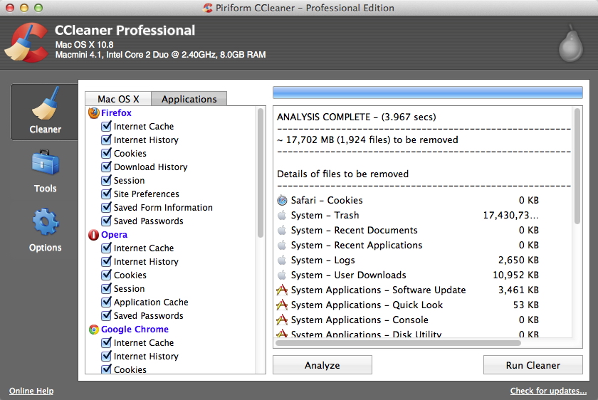 CCleaner是一款頂級的系統優化和隱私保護工具。CCleaner的主要用來清除MacOSX系統